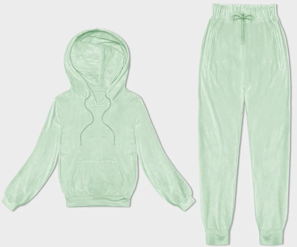 Dámská velurová souprava v pistáciové barvě s kapucí (8C1175-39)