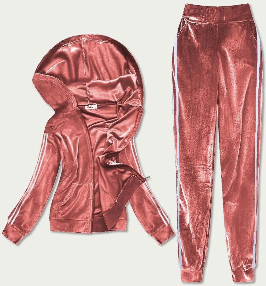 Dámský velurový dres v cihlové barvě s lampasy (81223)