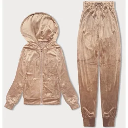 Béžová dámská velurová souprava s rozepínací mikinou (8C1176-159)