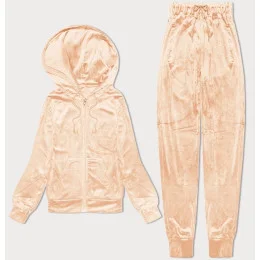 Dámská velurová souprava v broskvové barvě s rozepínací mikinou (8C1176-150)