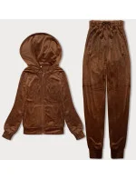 Dámská velurová souprava v broskvové barvě s rozepínací mikinou (8C1176-150)