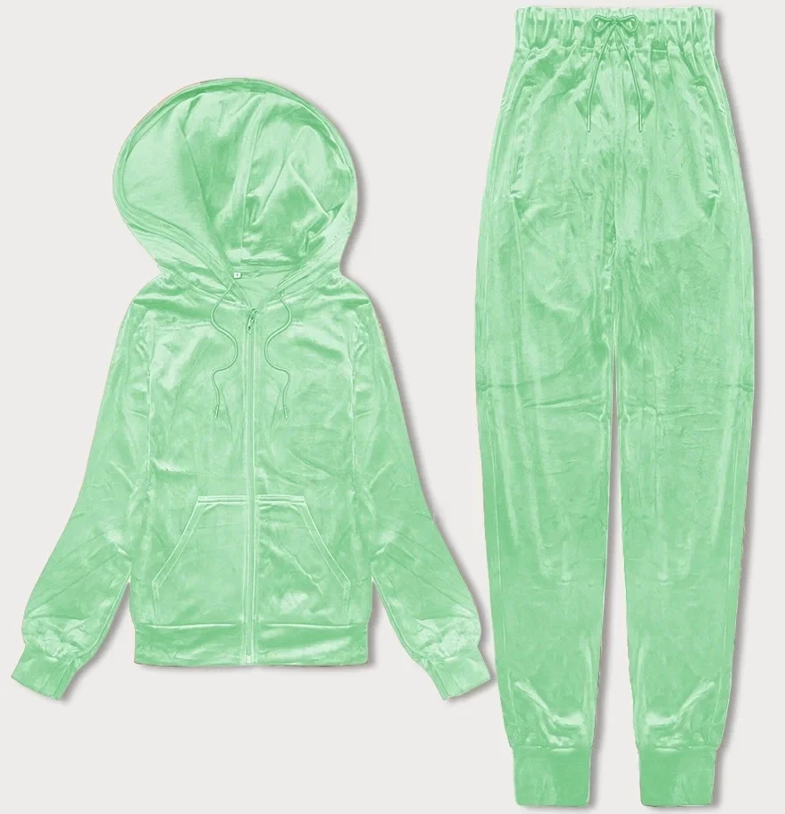 Světle zelená dámská velurová souprava s rozepínací mikinou (8C1176-127)
