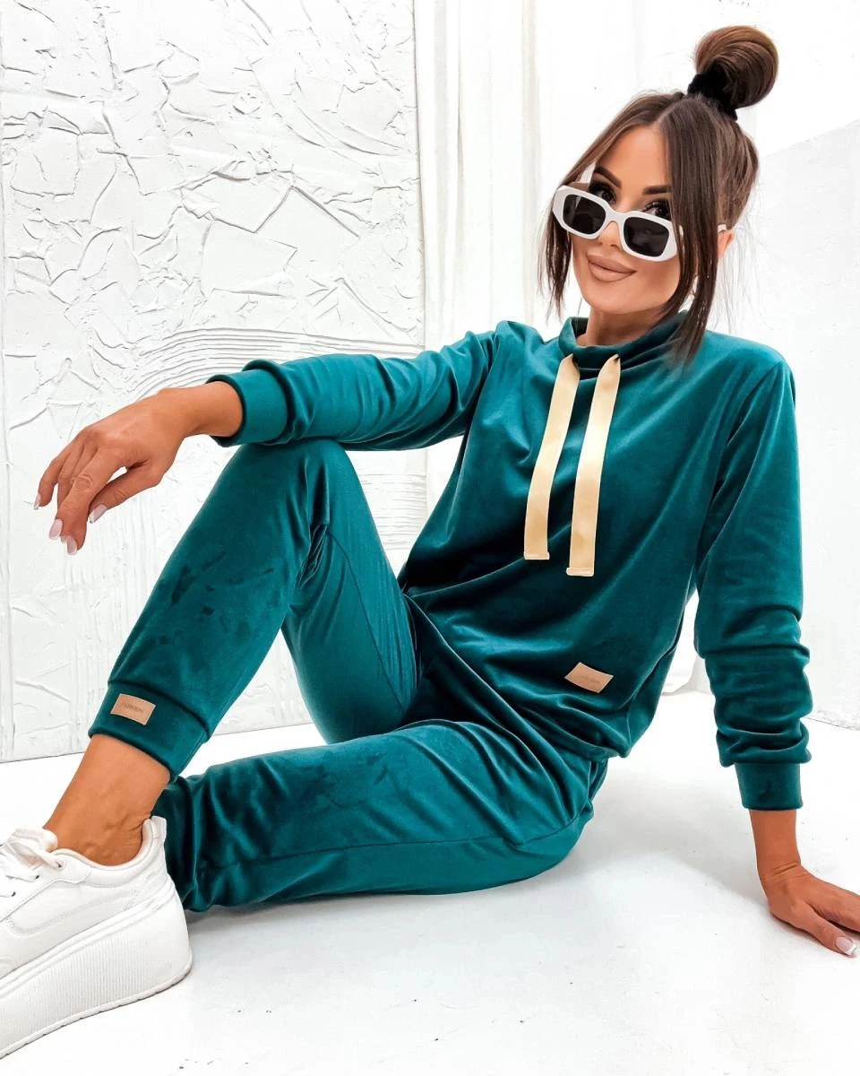 Dámský velurový komplet v lahvově zelené barvě (637)
