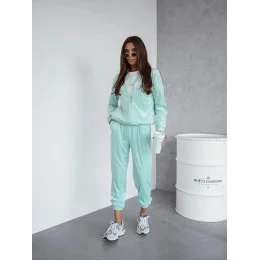 Dámský velurový komplet v mátové barvě s rozepínací mikinou (768)