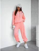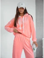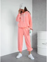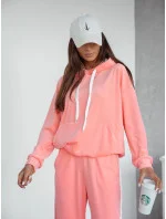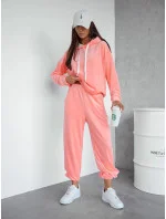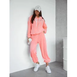 Dámský velurový teplákový komplet v broskvové barvě s lampasy (508)