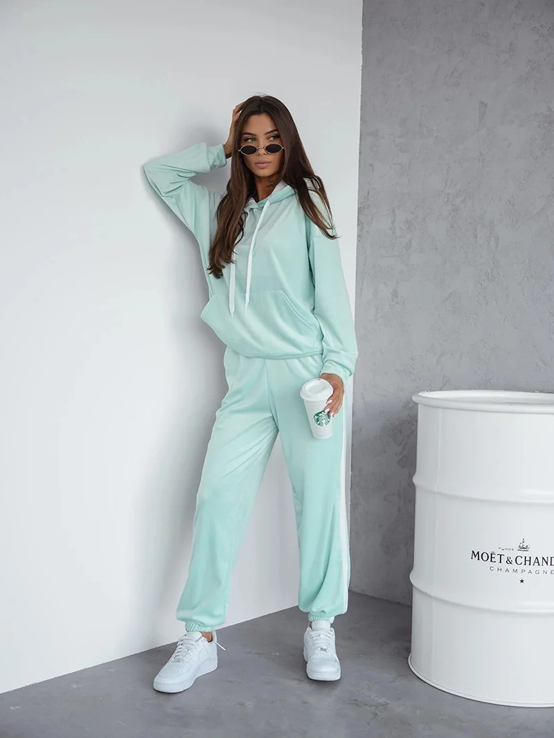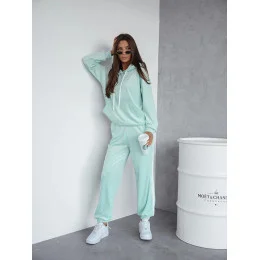 Dámský velurový teplákový komplet v mátové barvě s lampasy (508)