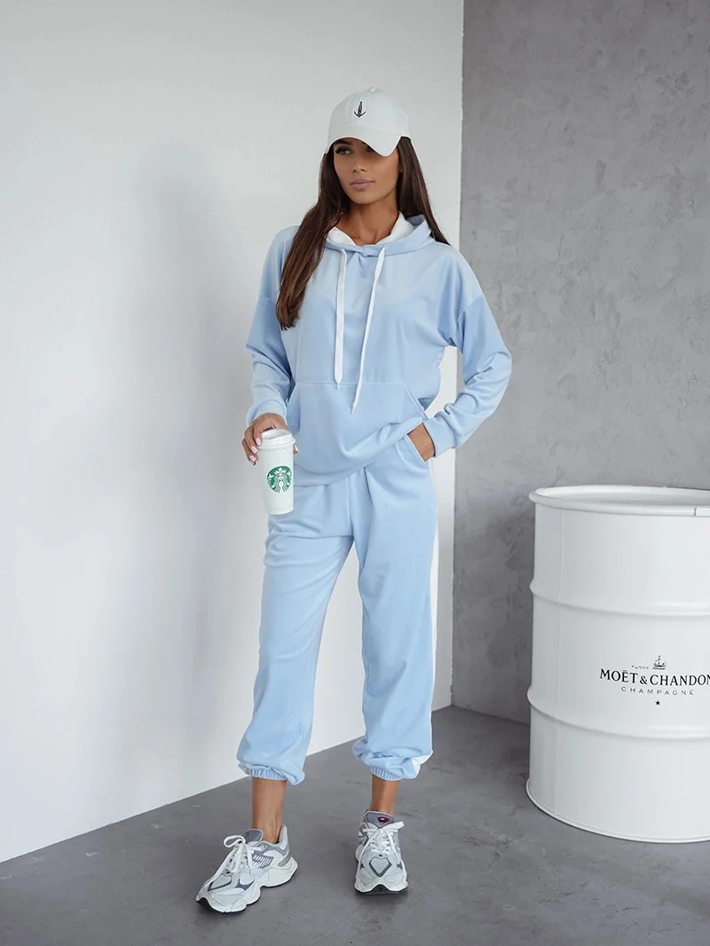 Světle modrý dámský velurový teplákový komplet s lampasy (508)