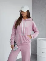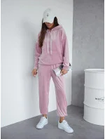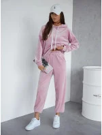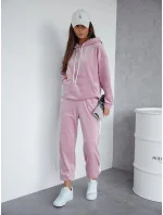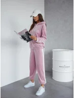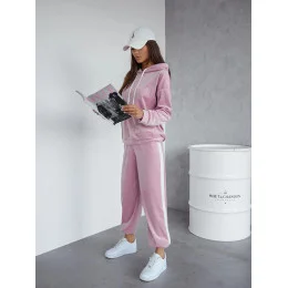 Dámský velurový teplákový komplet v broskvové barvě s lampasy (508)