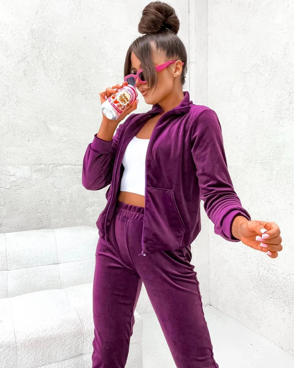 Dámský velurový komplet ve vínové bordó barvě s rozepínací mikinou (771)