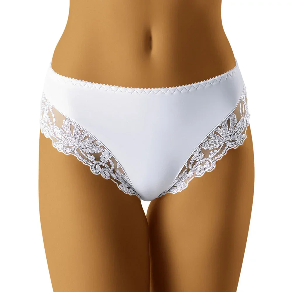 Dámské kalhotky značky Wol-Bar, model Lara. Výrobek je vyroben z 83 % polyamidu, 17 % elastanu. Vlastnosti výrobku: klasická elegance s výšivkou.