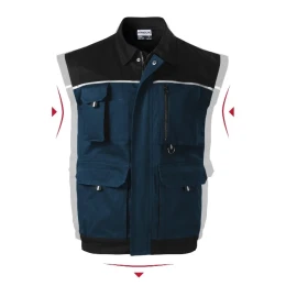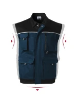 celopropínací kostěný zip s klopou záhyby na zadním dílu 8 multifunkčních kapes měchové kapsy s klopou a lištové kapsy na zip dolní okraj stažený pruženkou v boční části kovové "D" poutko na klíče a ID karty dvojité prošití pro vyšší odolnost retroreflexní prvky
