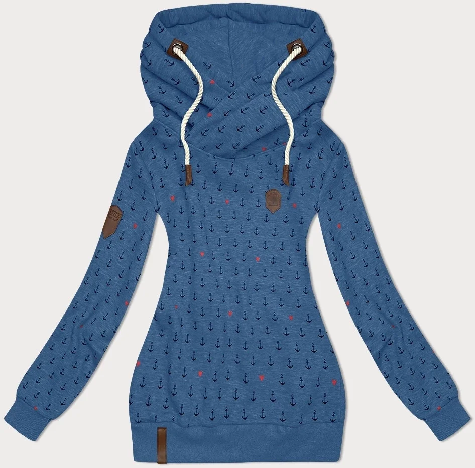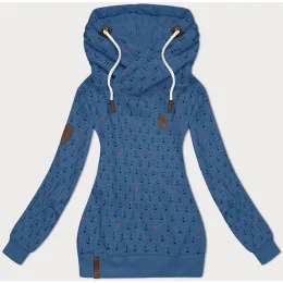Mikina se obléká přes hlavu. Model má kapuci se stahujícími šňůrkami. Kapuci není možné odepnout. Uvnitř modelu je příjemný mechovitý kožíšek. Rukávy a spodní okraj mikiny jsou olemované stahovacími lemy. Mikina má délku k bokům.