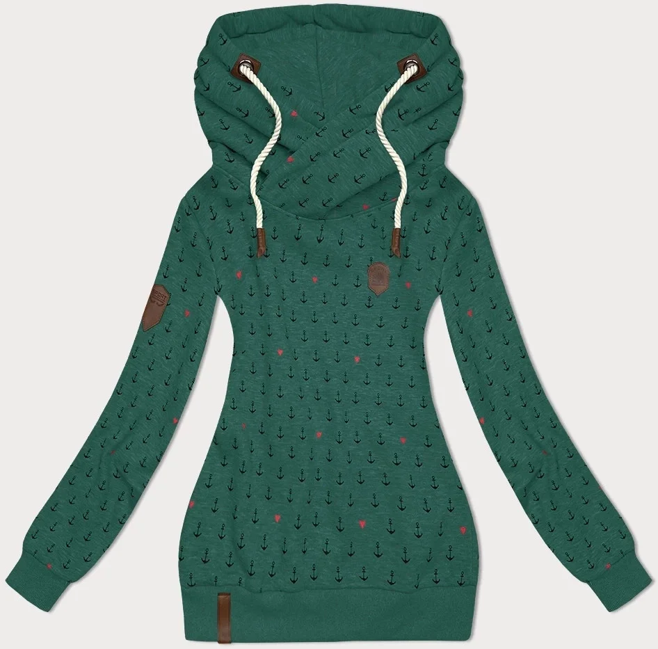 Vzorovaná dámská mikina v tyrkysové barvě (2304)