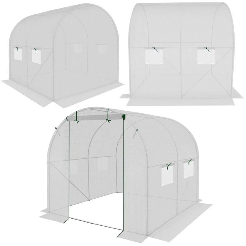 Skleník byl chytře navržen se 4 okny se sítěmi proti komárům a fóliovými závěsy, které chrání před nadměrnou vlhkostí a zároveň zajišťují optimální proudění vzduchu a světla. Uzamykatelné dveře umožňují pohodlný výstup nebo vstup.