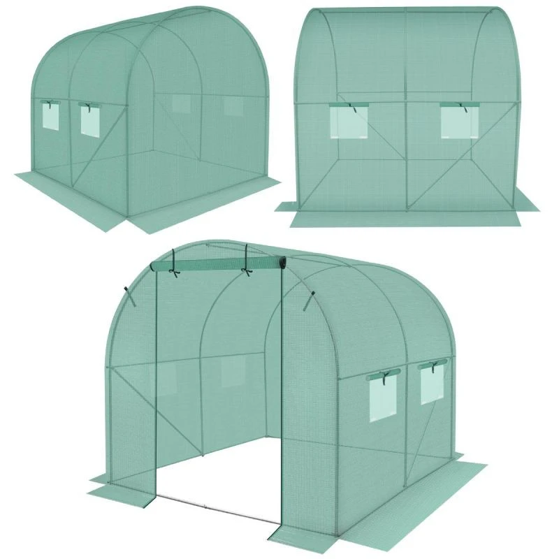 Skleník byl chytře navržen se 4 okny se sítěmi proti komárům a fóliovými závěsy, které chrání před nadměrnou vlhkostí a zároveň zajišťují optimální proudění vzduchu a světla. Uzamykatelné dveře umožňují pohodlný výstup nebo vstup.