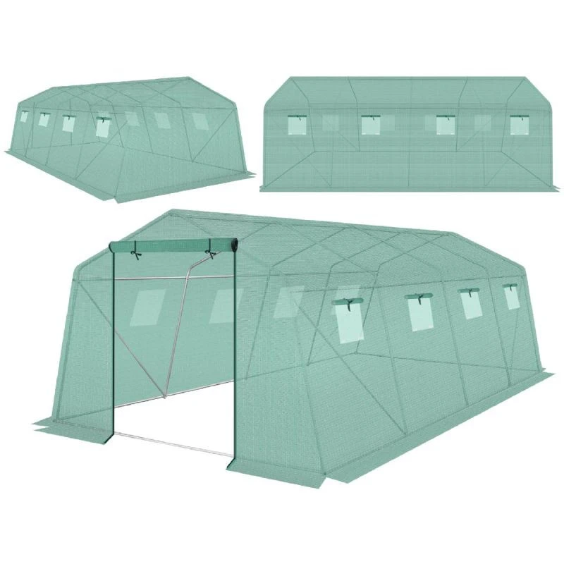 Skleník byl chytře navržen s 8 okny se síťkami proti komárům, která lze zvenku kdykoli zavřít a otevřít, což vám umožní regulovat množství světla pronikajícího do tunelu, a 120 cm širokými, pohodlnými dveřmi na zip.