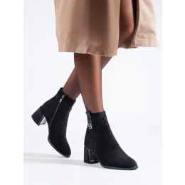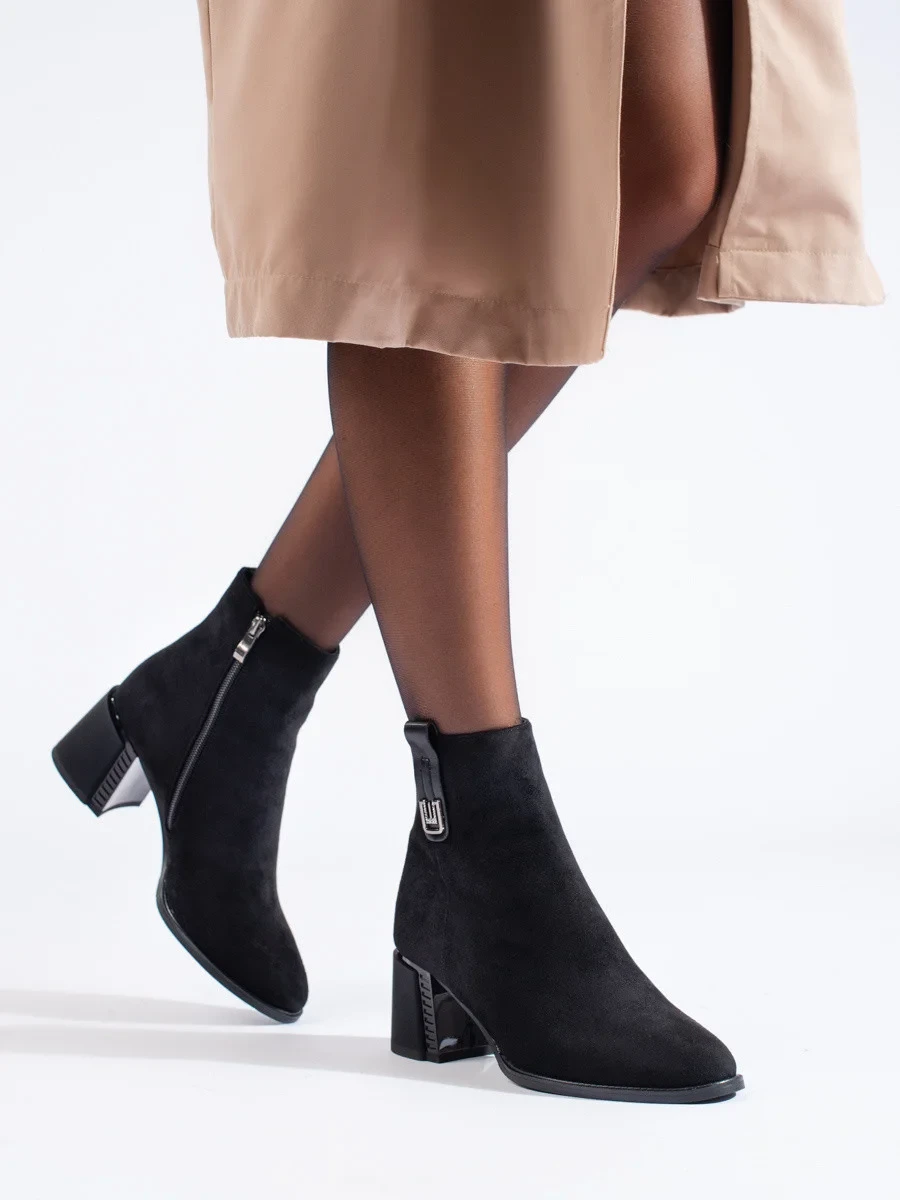 Zajímavé černé dámské kotníčkové boty na širokém podpatku
