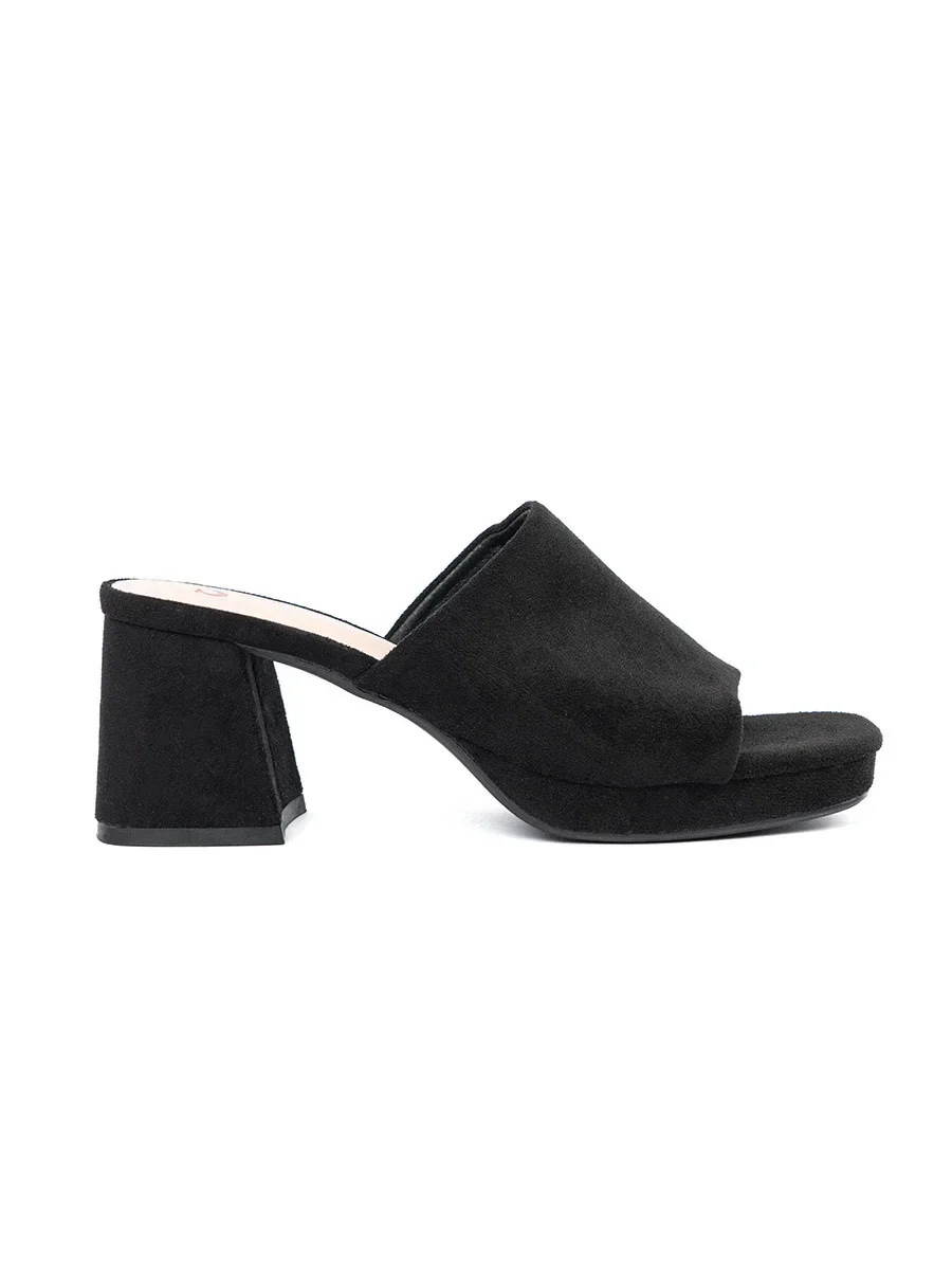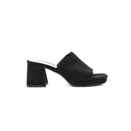 Zajímavé černé dámské nazouváky na širokém podpatku