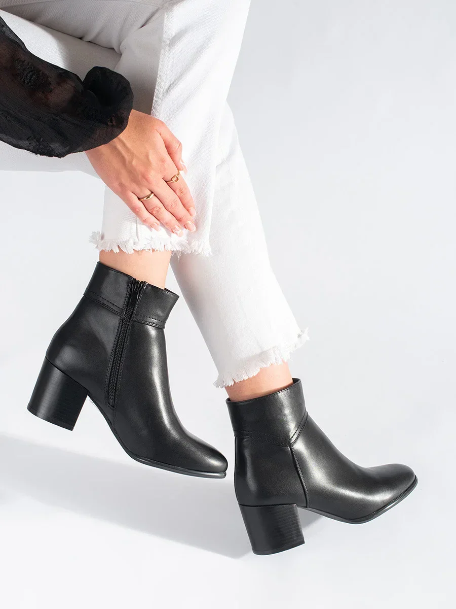 Zajímavé černé kotníčkové boty dámské na širokém podpatku