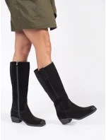 Dámské kozačky od značky Big Star jsou elegantní volbou na chladnější dny. Vyrobené z eko semiše, usazené na platformě, zajišťují pohodlí a stabilitu, a jejich svršek sahající nad koleno jim dodává šmrnc. Šňůrka na vrchní části svršku umožňuje lepší přizpůsobení noze. Tyto kozačky budou ideální volbou k sukním a šatům, dodávajíc každému outfitu ženský a módní charakter. Při výběru velikosti prosím dbejte na tabulku velikostí. Při výběru velikosti se řiďte tabulkou velikostí.