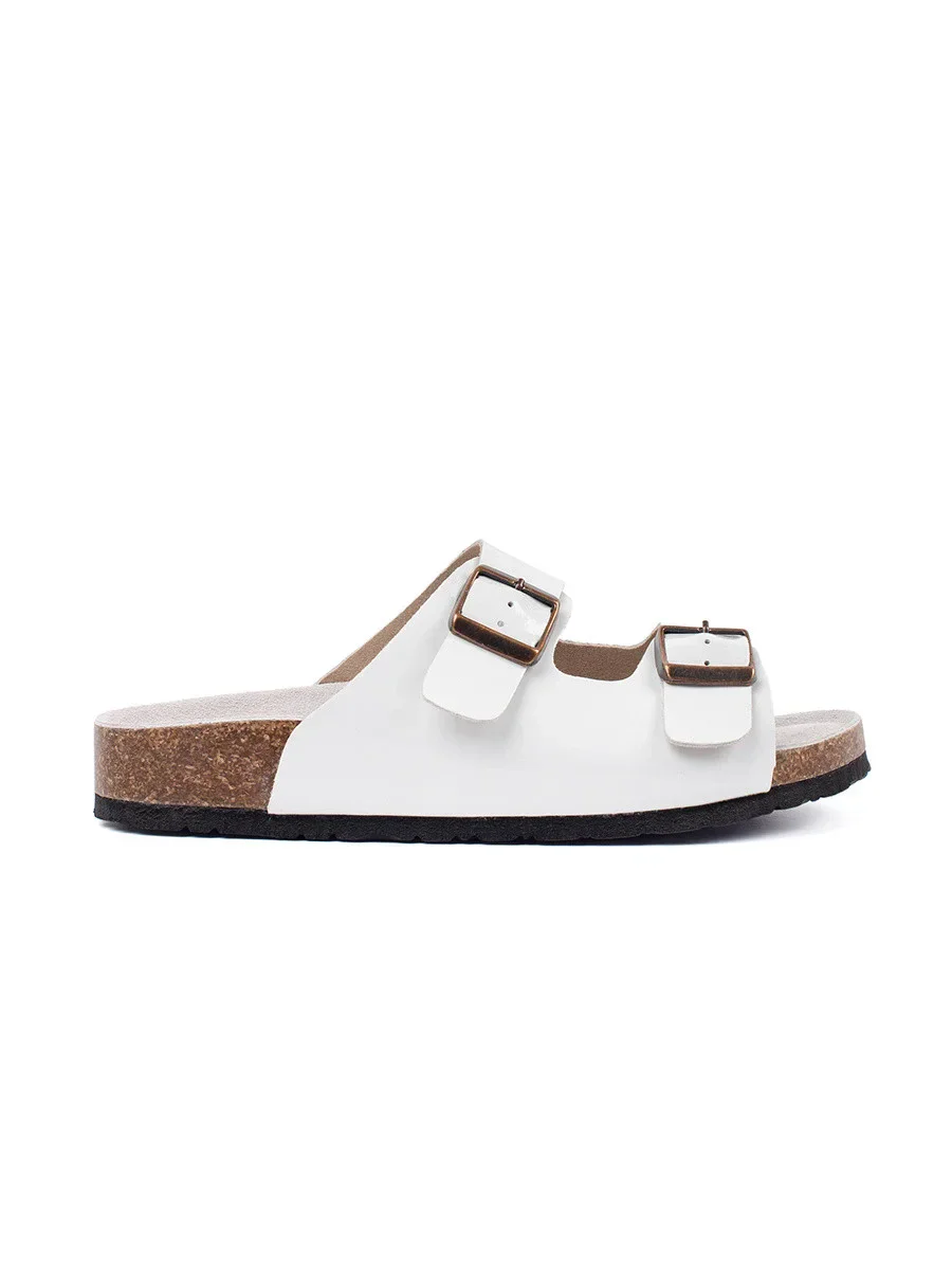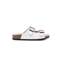Zajímavé dámské bílé nazouváky na plochém podpatku