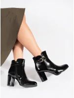 Kožené lakované dámské kotníčkové boty s ozdobným šněrováním D&A MR52-124 Černé