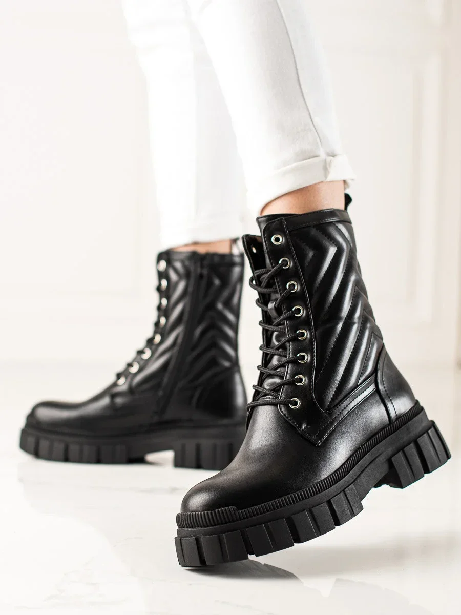 Zajímavé dámské kotníčkové boty černé na plochém podpatku