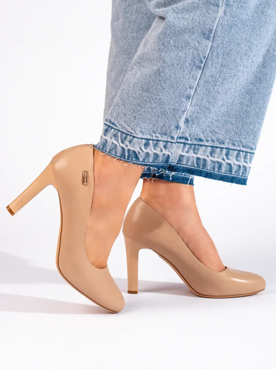 Zajímavé dámské lodičky hnědé na širokém podpatku