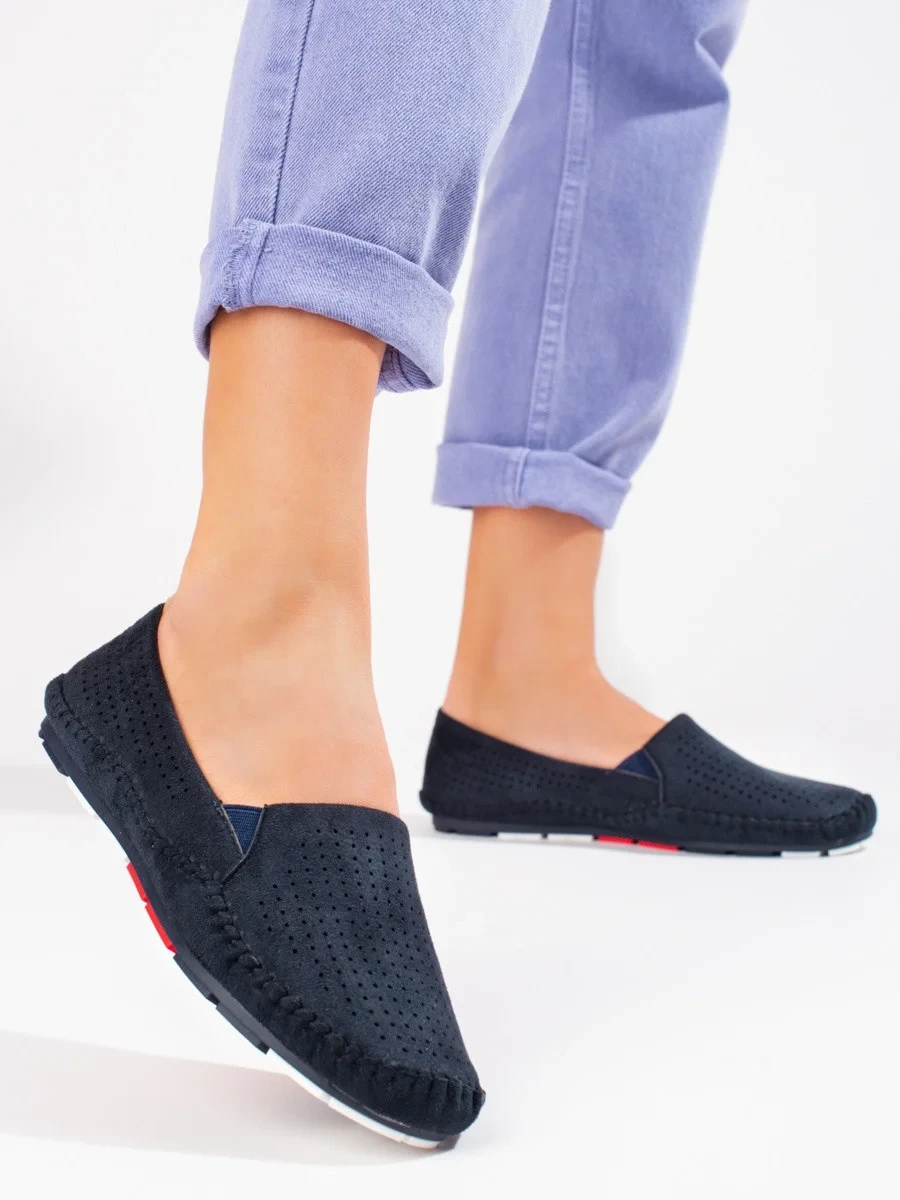 Zajímavé dámské mokasíny Granatowy bez podpatku