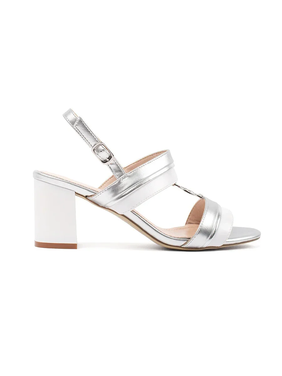Zajímavé dámské stříbrné sandály na širokém podpatku