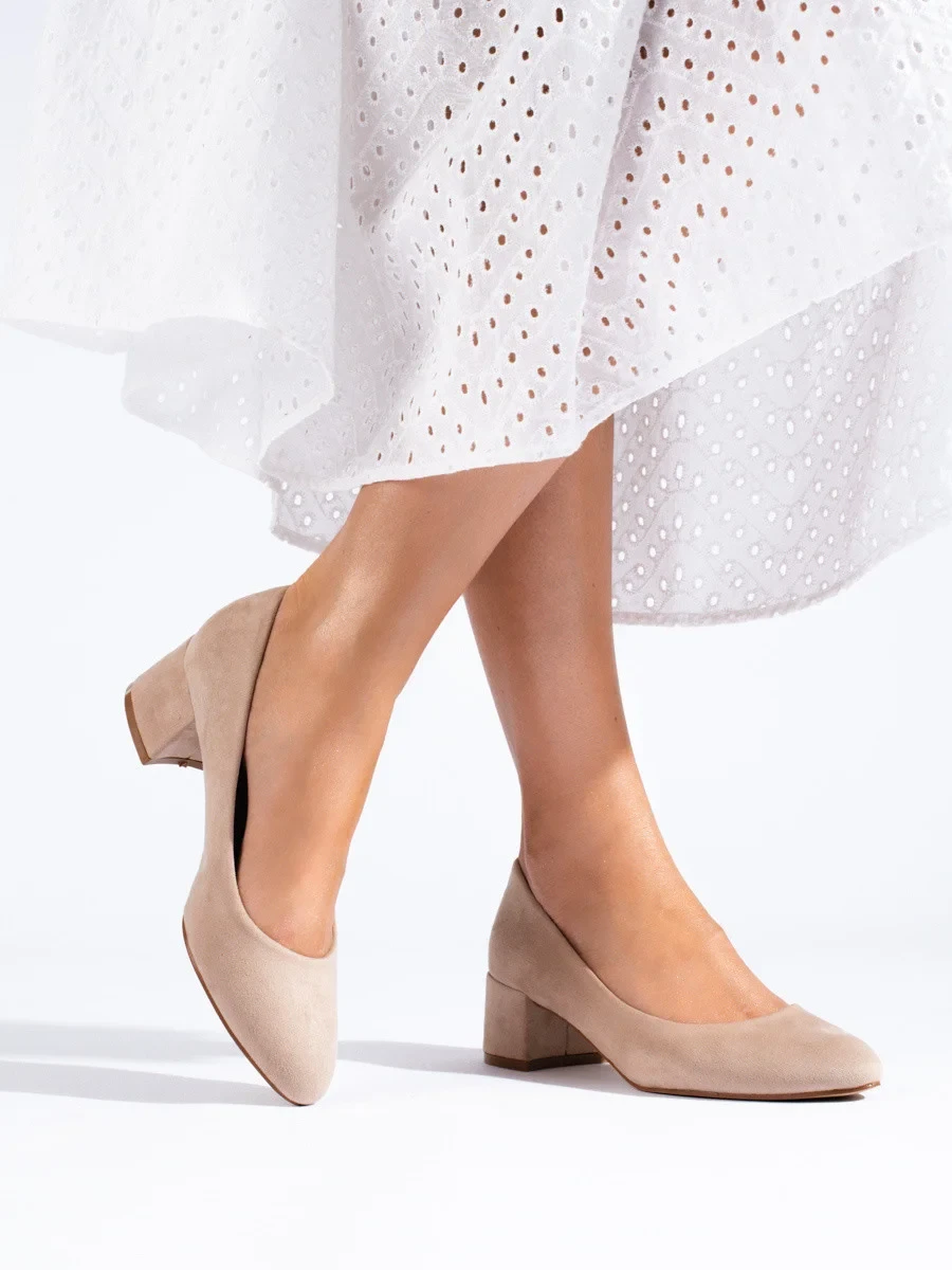 Zajímavé hnědé dámské lodičky na širokém podpatku