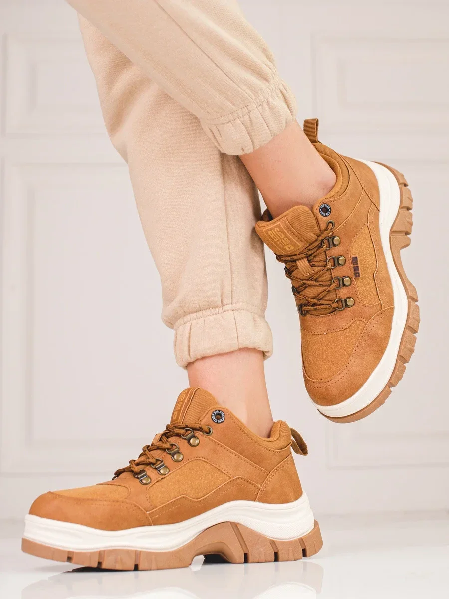 Zajímavé hnědé tenisky dámské bez podpatku