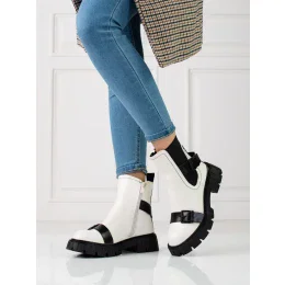 Zajímavé kotníčkové boty bílé dámské na plochém podpatku