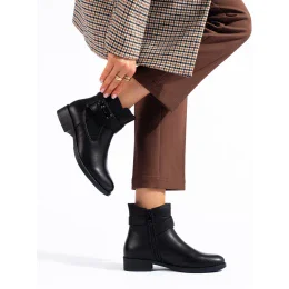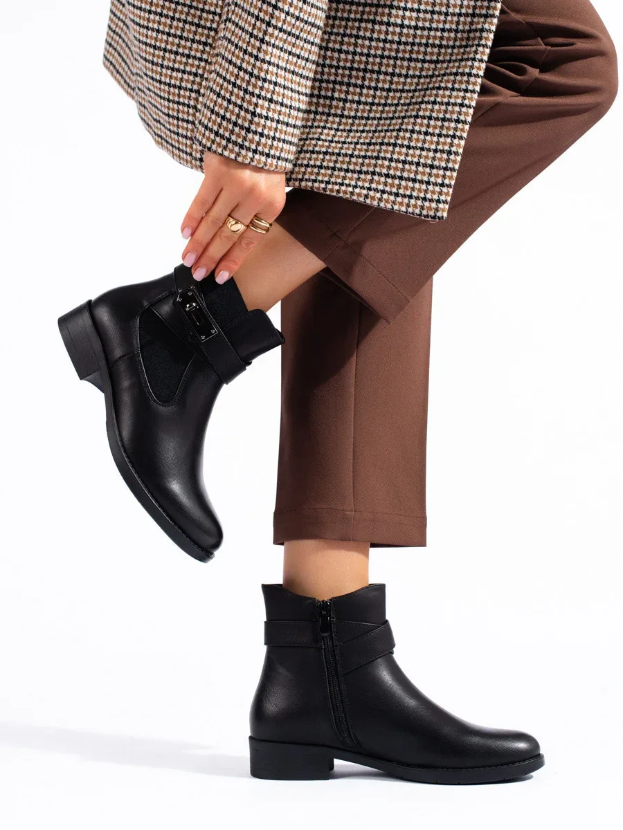 Zajímavé kotníčkové boty černé dámské na plochém podpatku