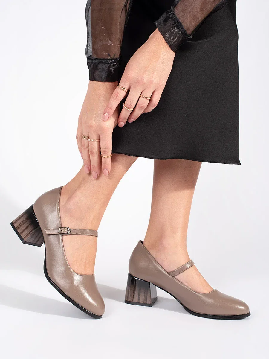 Zajímavé lodičky hnědé dámské na širokém podpatku