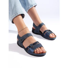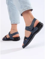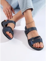 Dámské sandály na plochém podpatku s ozdobou Vinceza 17381 Modré