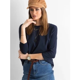 Námořnicky modrá halenka April. Minimalistický základní styl je již několik sezón jedním z nejdominantnějších trendů v dámské módě. Není divu, vždyť oděvy bez vzorů volí ženy zdaleka nejčastěji, protože jsou univerzální a nadčasové. Představená halenka s 3/4 rukávy se hodí k většině ostatních oděvů a můžete ji nosit ke všem neformálním příležitostem. Půjdete v něm do práce, na rande nebo s přáteli a vždy si budete jisti, že jste oblečeni vhodně pro danou situaci. Blůza je vyrobena z příjemné na dotek a prodyšné směsové tkaniny, takže perfektně sedí na postavě a zaručuje vysoký komfort při nošení. Hodí se pro nošení ve všech ročních obdobích. Tato základní dámská halenka vypadá nejlépe v duu s našimi kalhotami, legínami nebo ženskými sukněmi.