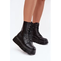 Zamszové Botky Workery Na Masivní Platformě Koturnie Černé Lavica