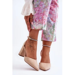 Zamszové Pumpy se Cyrkoniami Béžové Diamond
