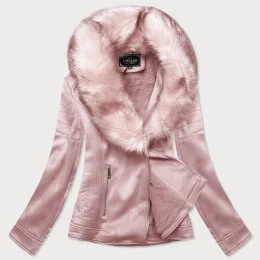 Dámská semišová bunda ramoneska v pudrově růžové barvě s kožešinou (6502big)
