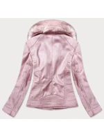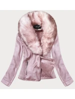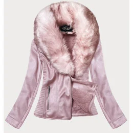 4. Dámská semišová bunda ramoneska v pudrově růžové barvě s kožešinou (6501big)