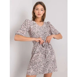 Špinavě růžové vzorované šaty s páskem.