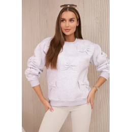 Zateplená mikina se stahovacím lemem a ozdobnými mašličkami béžová melanž