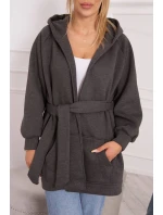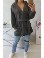 Zateplená bunda se zavazováním v pase v grafitové barvě