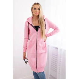 Zateplená dlouhá mikina s kapucí v barvě světle růžová