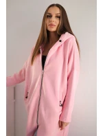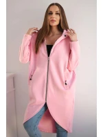 Zateplená dlouhá mikina s kapucí v barvě světle růžová