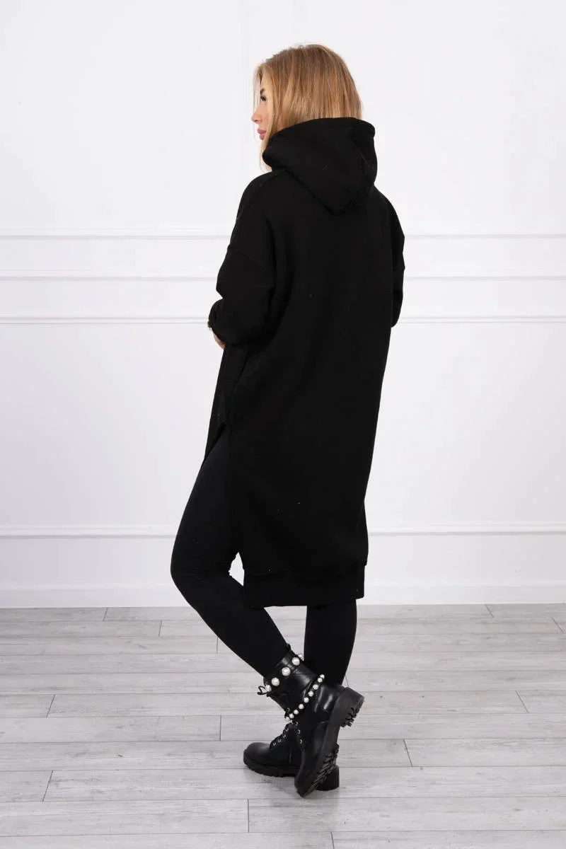 Zateplená mikina s bočními rozparky černá