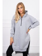 Zateplená mikina s bočními rozparky šedá