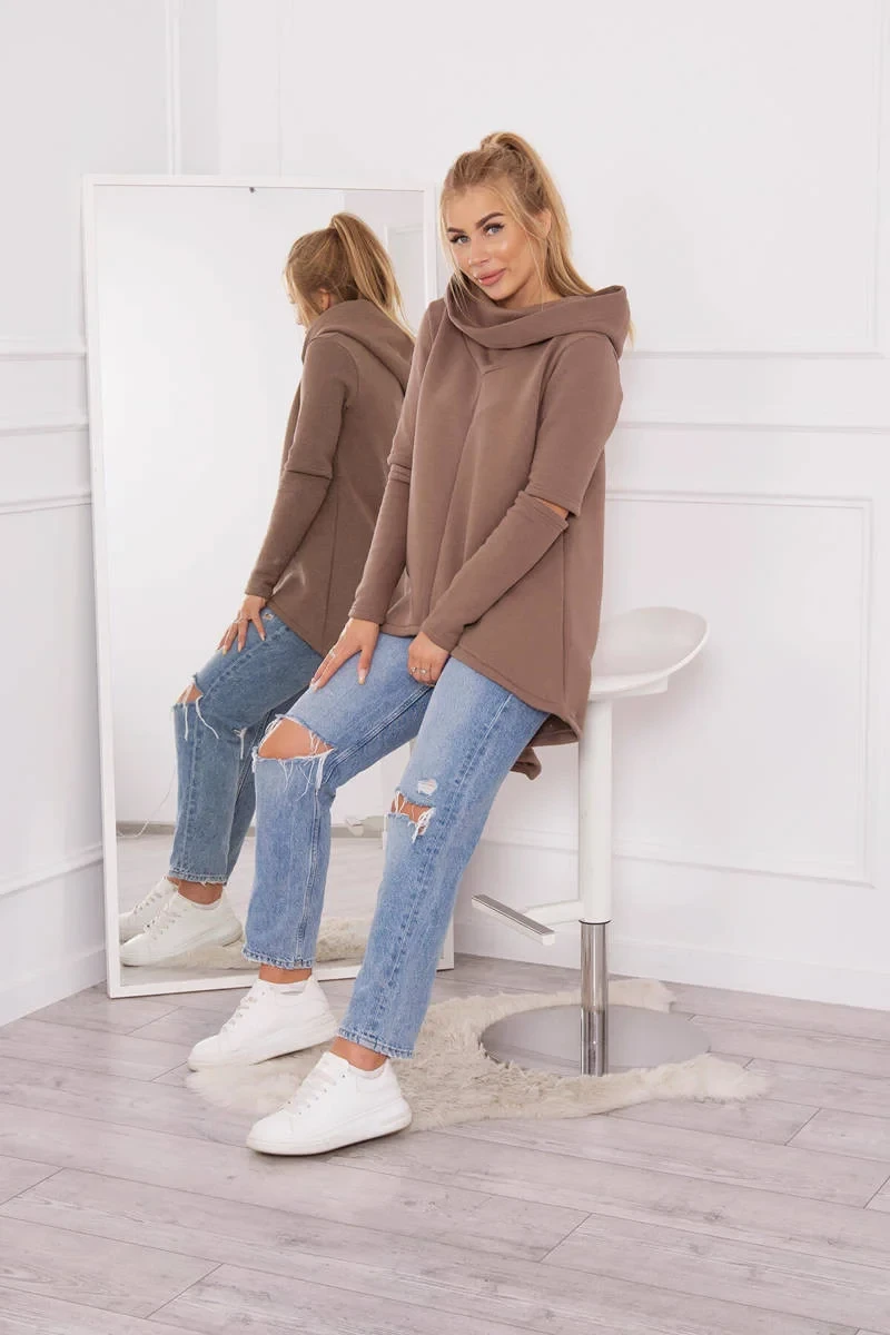 Zateplená mikina s delší zadní částí mocca