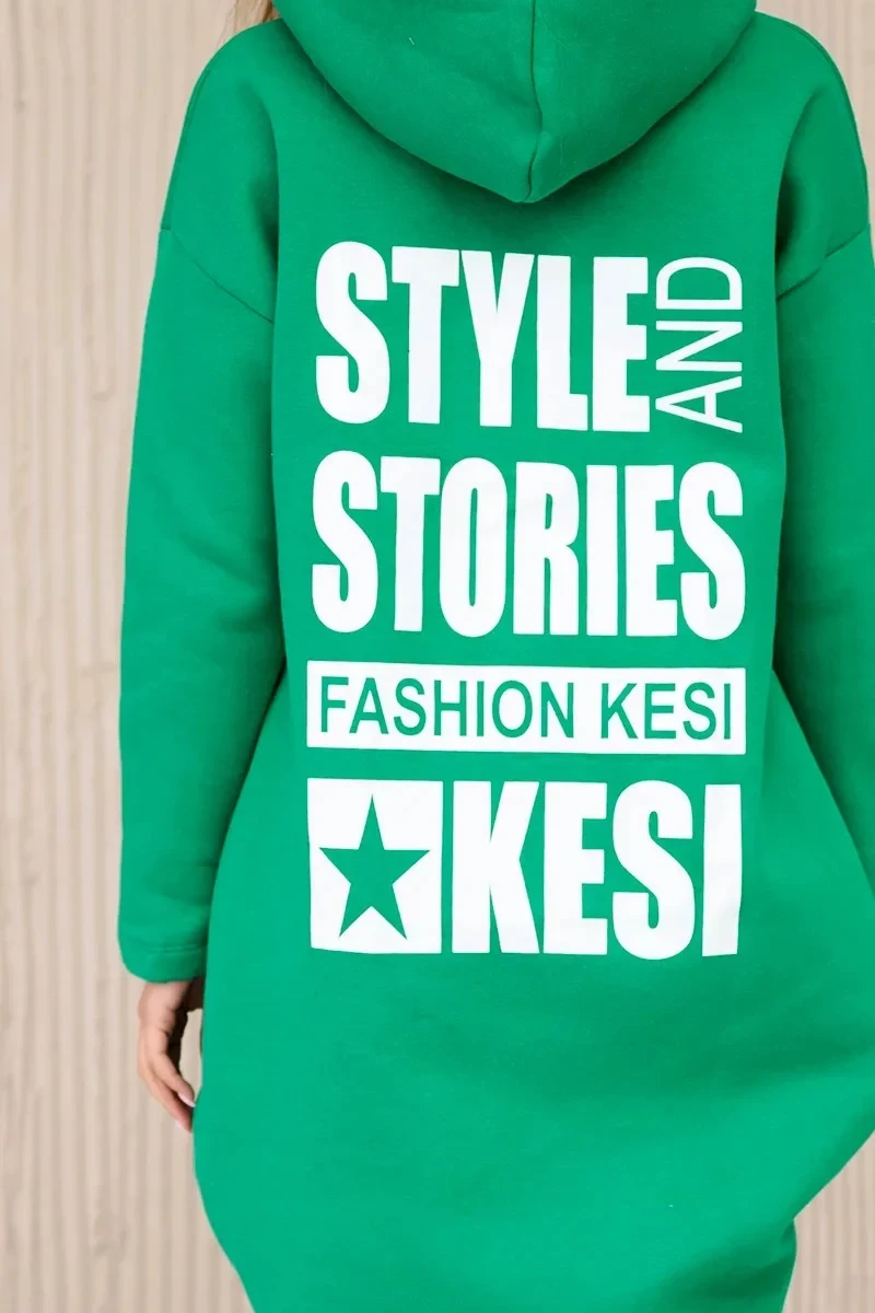 Zateplená mikina s dlouhými zády a kapucí zelená